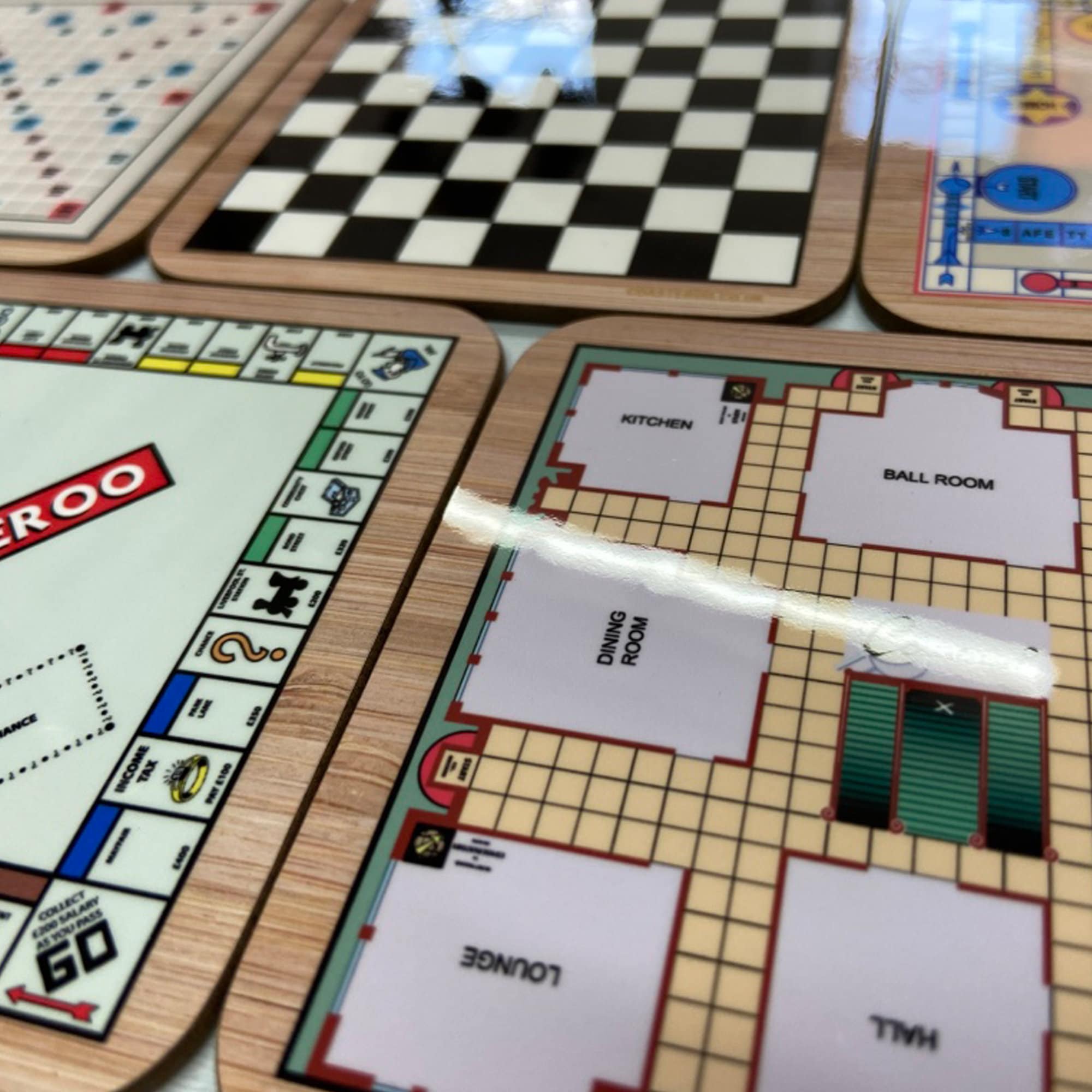Choose from the following board game design coasters: