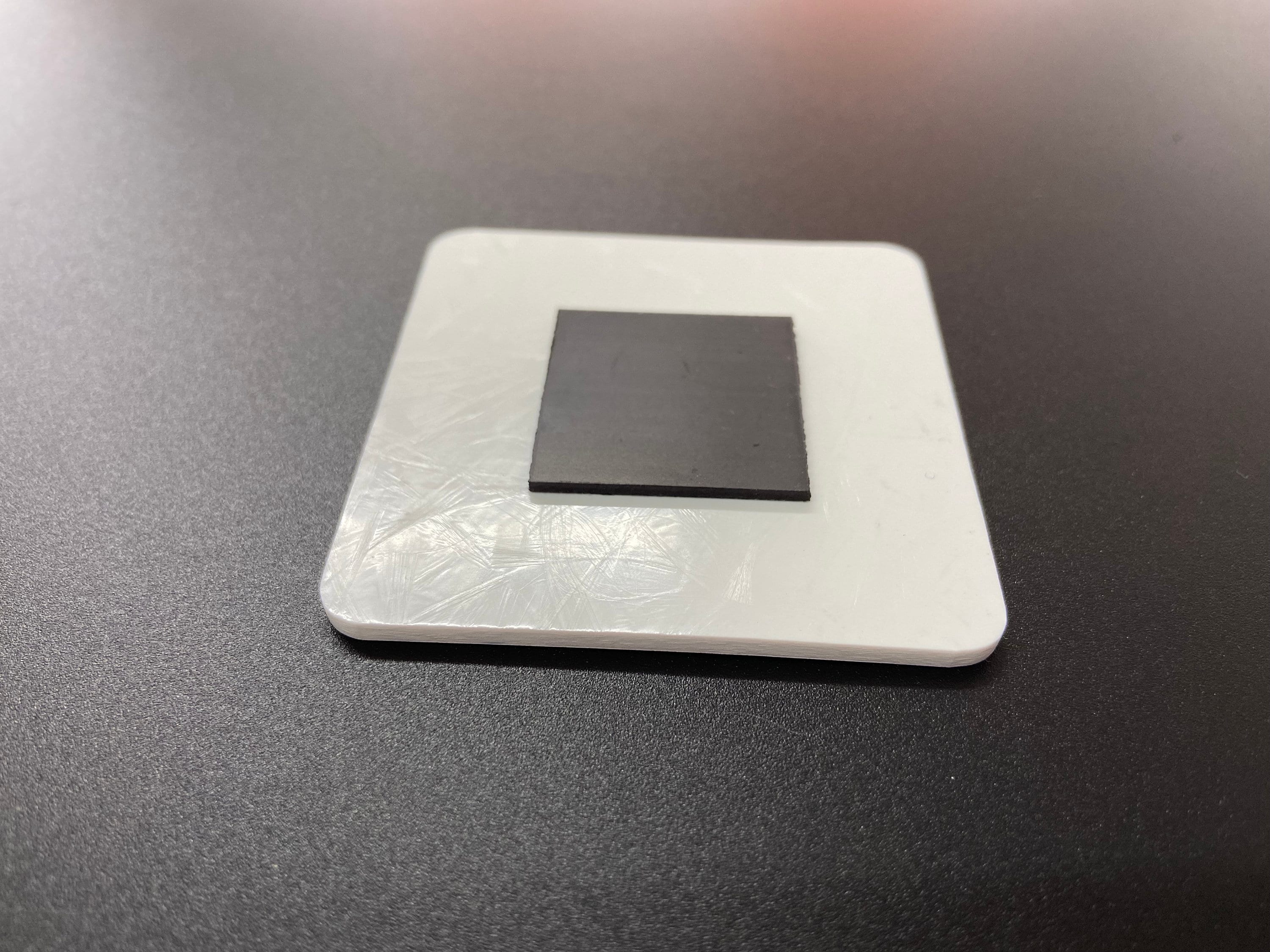 57mm x 57mm square with rounded corners.