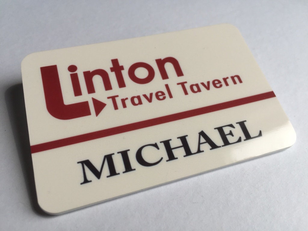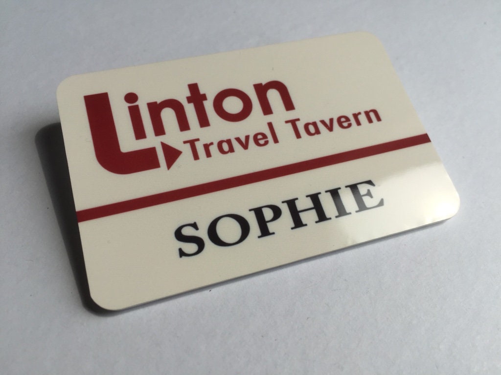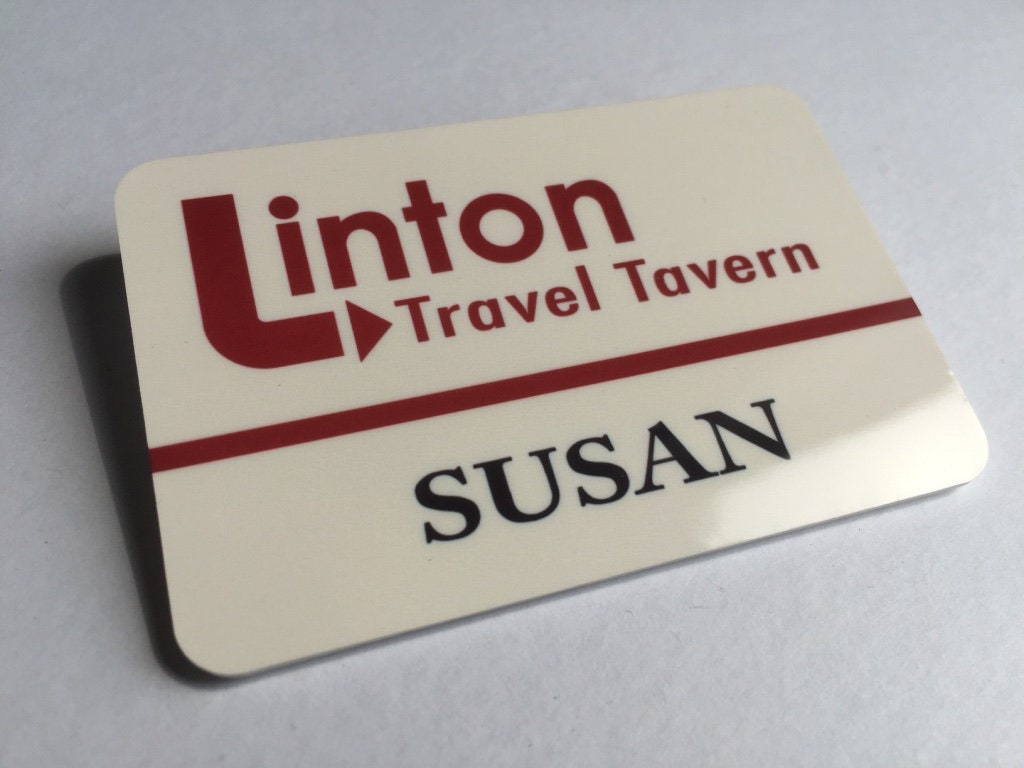 Plastic pin badge.
